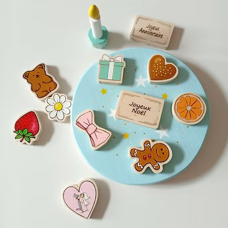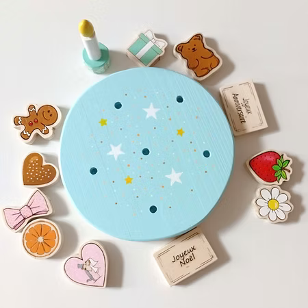 Cet ensemble en bois de 13 pièces comprend : 1 gâteau, 11 décorations pour le garnir, 1 bougie et 1 sac en lin pour un rangement pratique.
